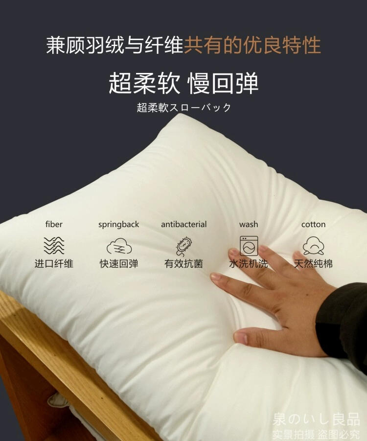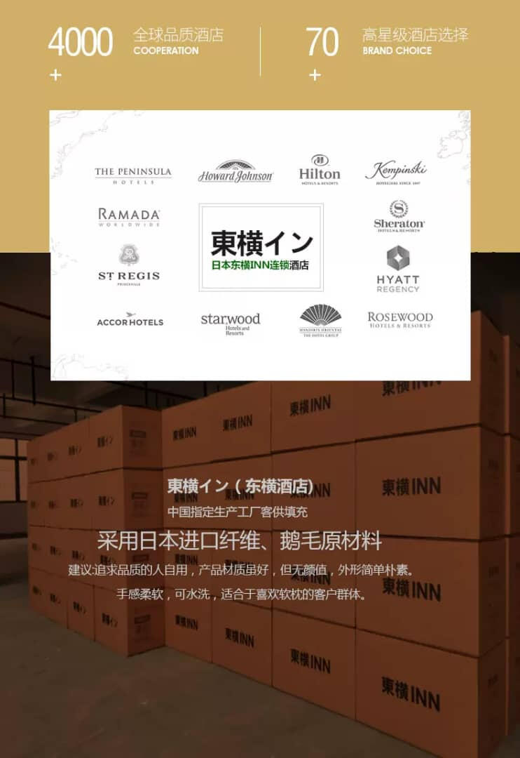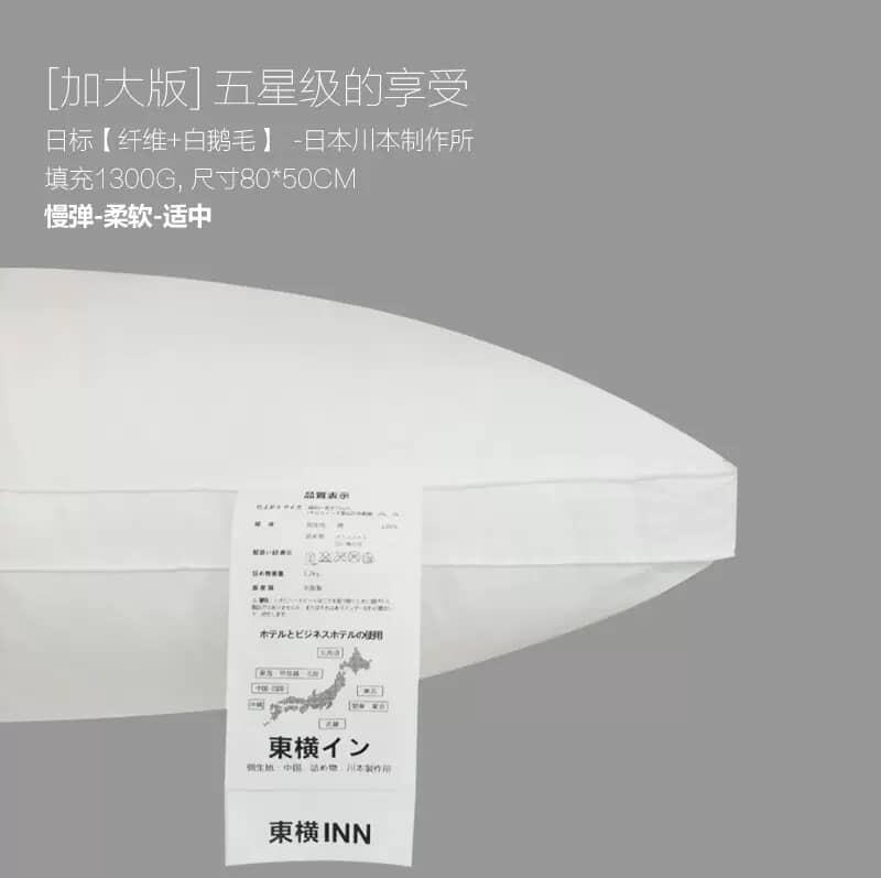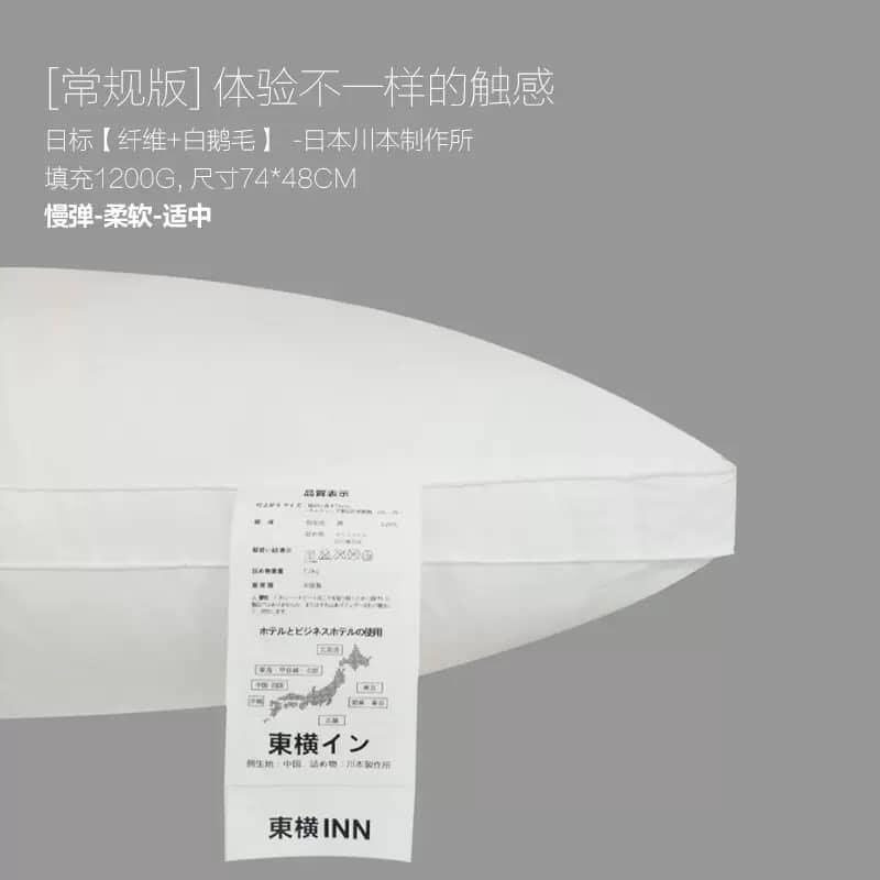 这款立体羽丝绒枕就是出口日本专供東横INN酒店专用的枕头,48x74cm标准单人枕尺码和50x80cm五星加大版, 超柔软超蓬松,躺下去的瞬间就觉得自己就像枕在棉花糖上一般,这个枕头真的会让你爱上睡觉!